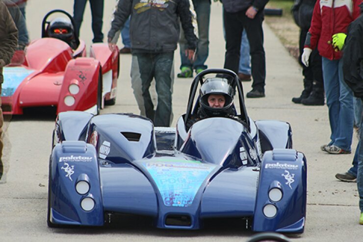 Like the US counterparts, Formula Student recognises that the program is really about learning Engineering Skills and not motorsport. With this in mind and being aware of how nervous some school administrators might be about students strapping themselves into a 400hp race car, the Australian vehicle also uses a 20.5 hp engine. The engine of choice is a 670cc V-Twin Kohler engine . This is coupled to a CVT (Constant Velocity transmission) which is chain driven to the rear axle assembly. The Australian designed chassis incorporates pushrod activated independent suspension for all for wheels acting on reservoir shock absorbers. The body is the same LMP (Le Mans Prototype) body the US teams run. In 2019, we also introduced a Clubman style vehicle to the program.